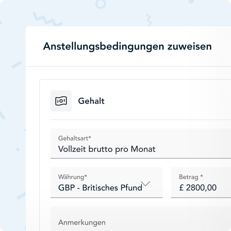 Mehrere WährungenMit HoorayHR verwaltest du problemlos Mitarbeitende in verschiedenen Ländern – jeweils mit der passenden Währung. Ob es um Gehaltsabrechnungen, Anstellungsbedingungen oder Spesenabrechnungen geht: Alles lässt sich für dein internationales Team in der richtigen Währung abwickeln.