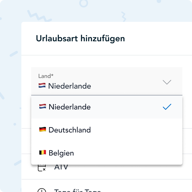 - Automatische Berechnung des Urlaubs auf Basis länderspezifischer Gesetzgebung