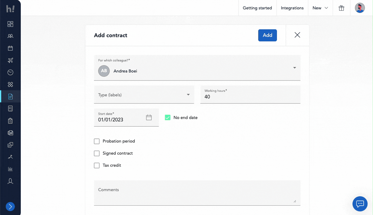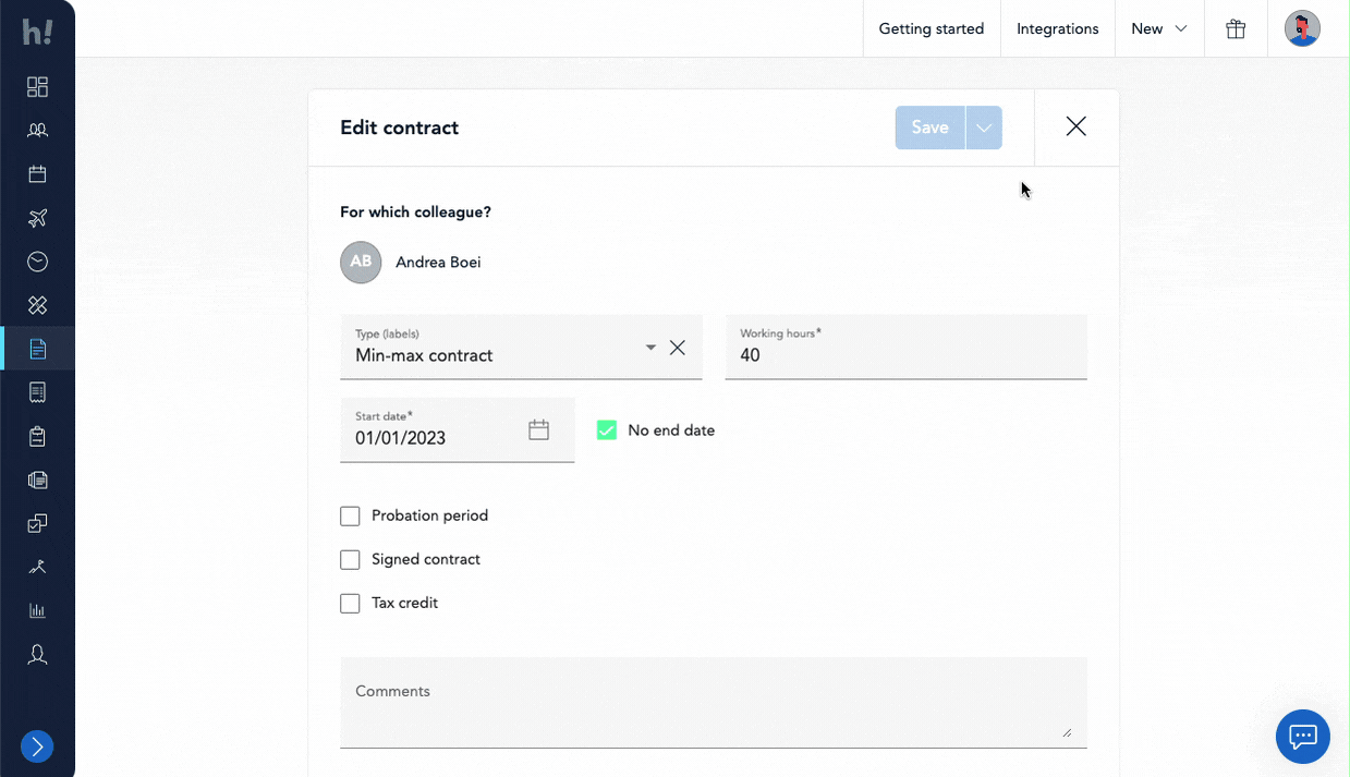 When entering a new agreement with your employee, extending a contract is as simple as creating a new contract. We automatically determine the active contract based on the start date. If you extend a contract in the future, it will automatically get the “Future” status until it becomes active.