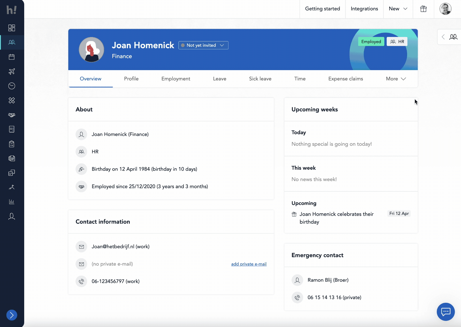 The supported features currently are company assets, leave, hours, absence, expenses, and travel expenses. You set the rights per colleague via their Profile β Settings.