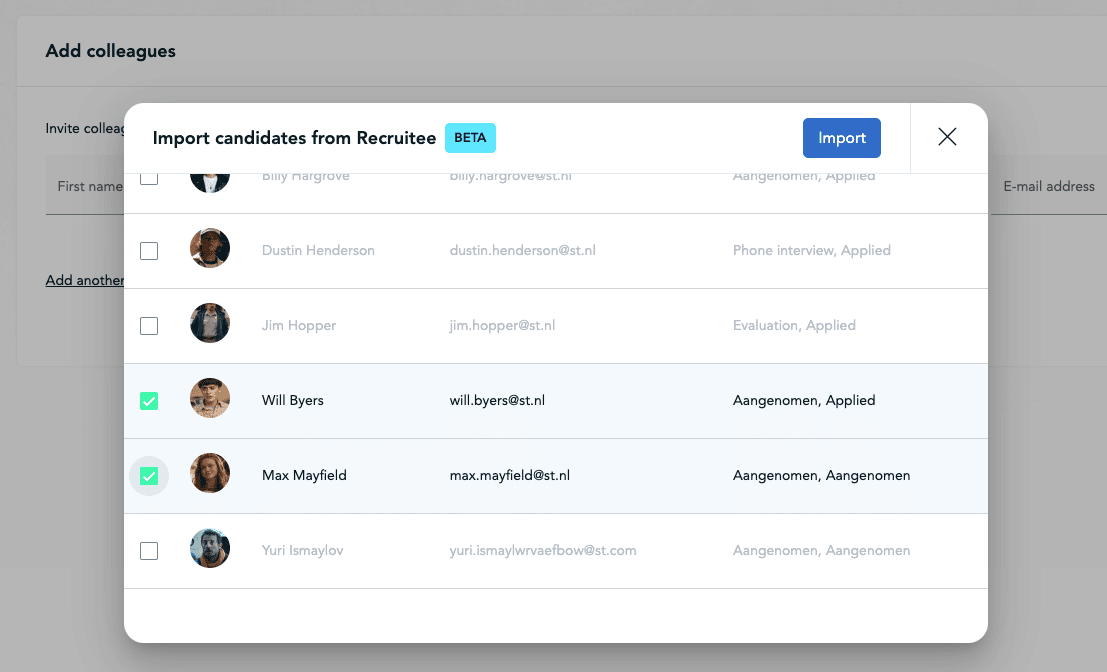 Within this integration, you have the option of automatically adding new candidates in HoorayHR, or manually. So you can keep control of the process yourself and set it up as it works best for you.