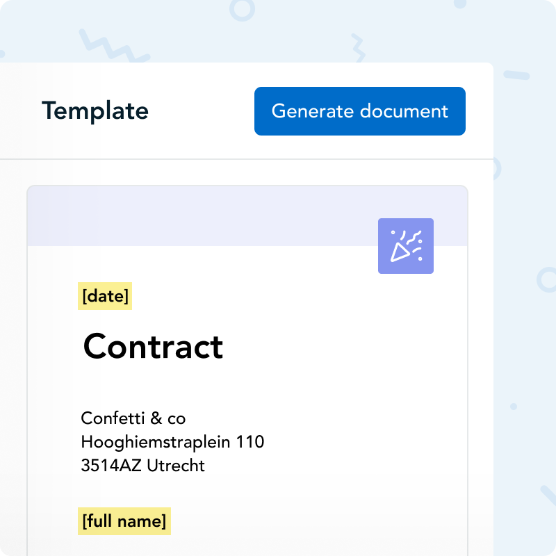 BrandingGenerate professional documents at the touch of a button, completely in your own house style. Perfect for contract addenda, confirmation letters or other standard documents that you regularly need to draw up for multiple employees.