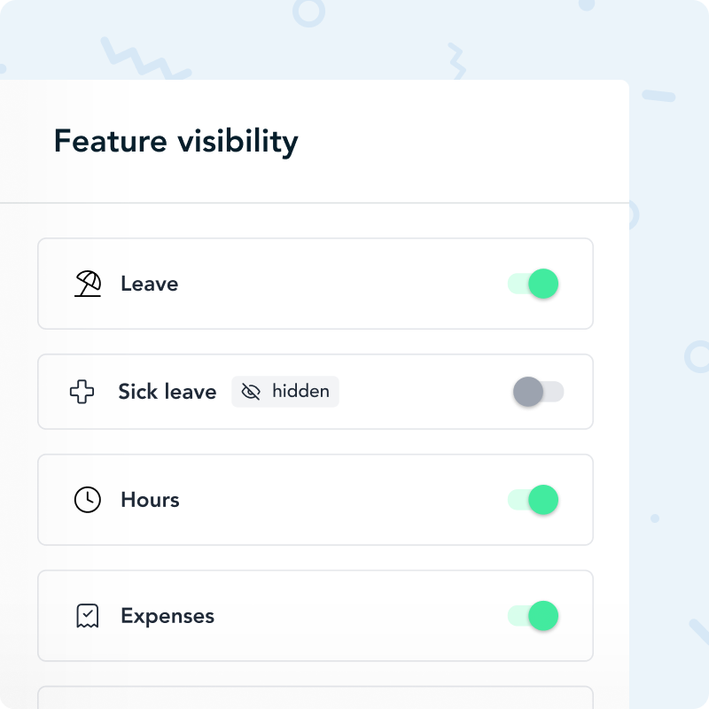 CustomizeConfigure HoorayHR entirely according to your company structure. Do you want to prevent employees from using a specific feature? In HoorayHR, it is possible to hide features from employees.