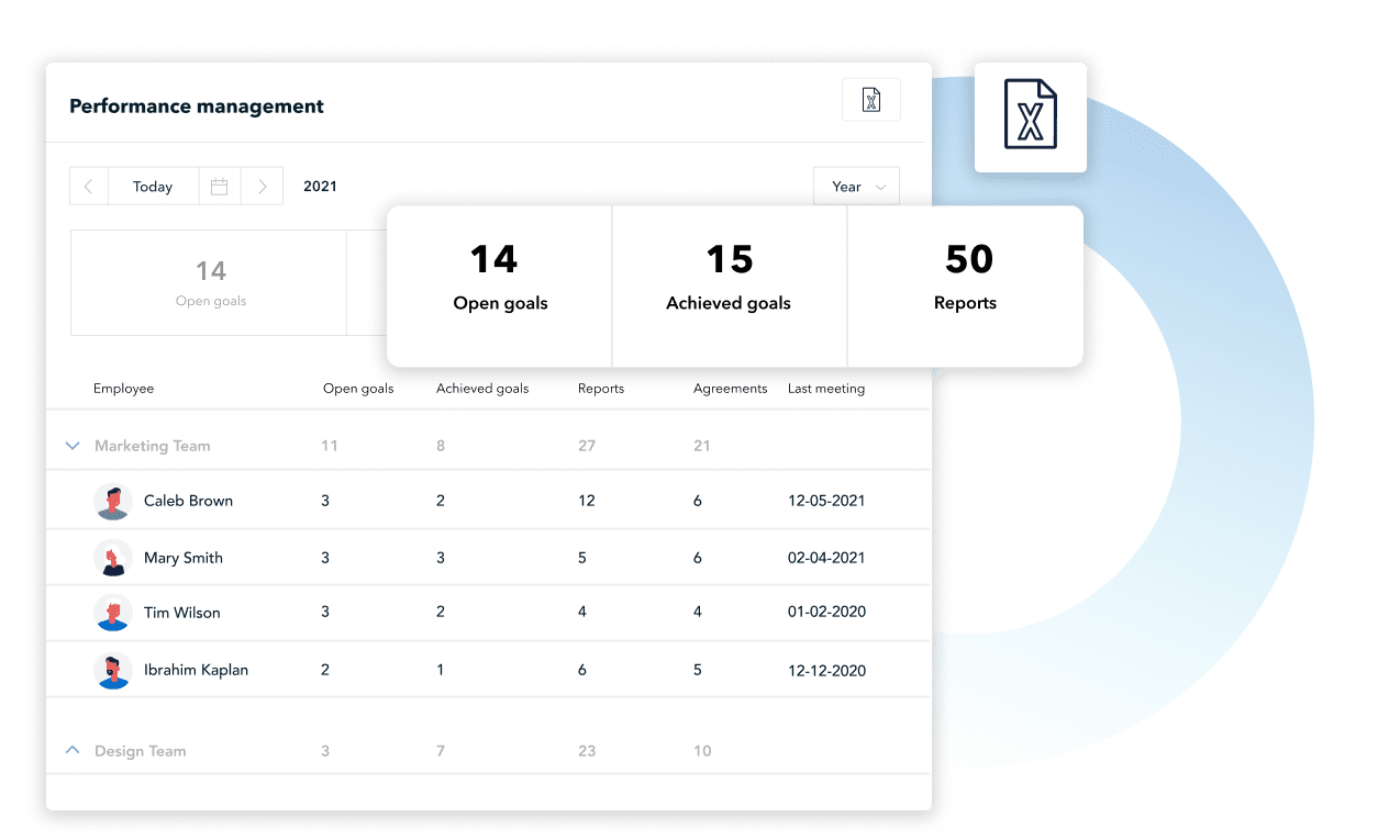 Keep control over your employees’ development, without losing track of goals, follow-up actions and development cycles. Train your employees and let your company grow with HoorayHR.